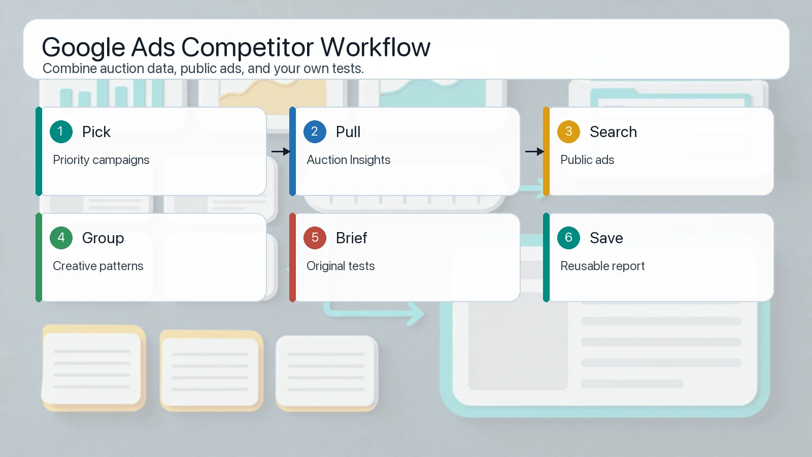 The best workflow turns auction pressure and public ad examples into testable creative briefs, not copycat campaigns.