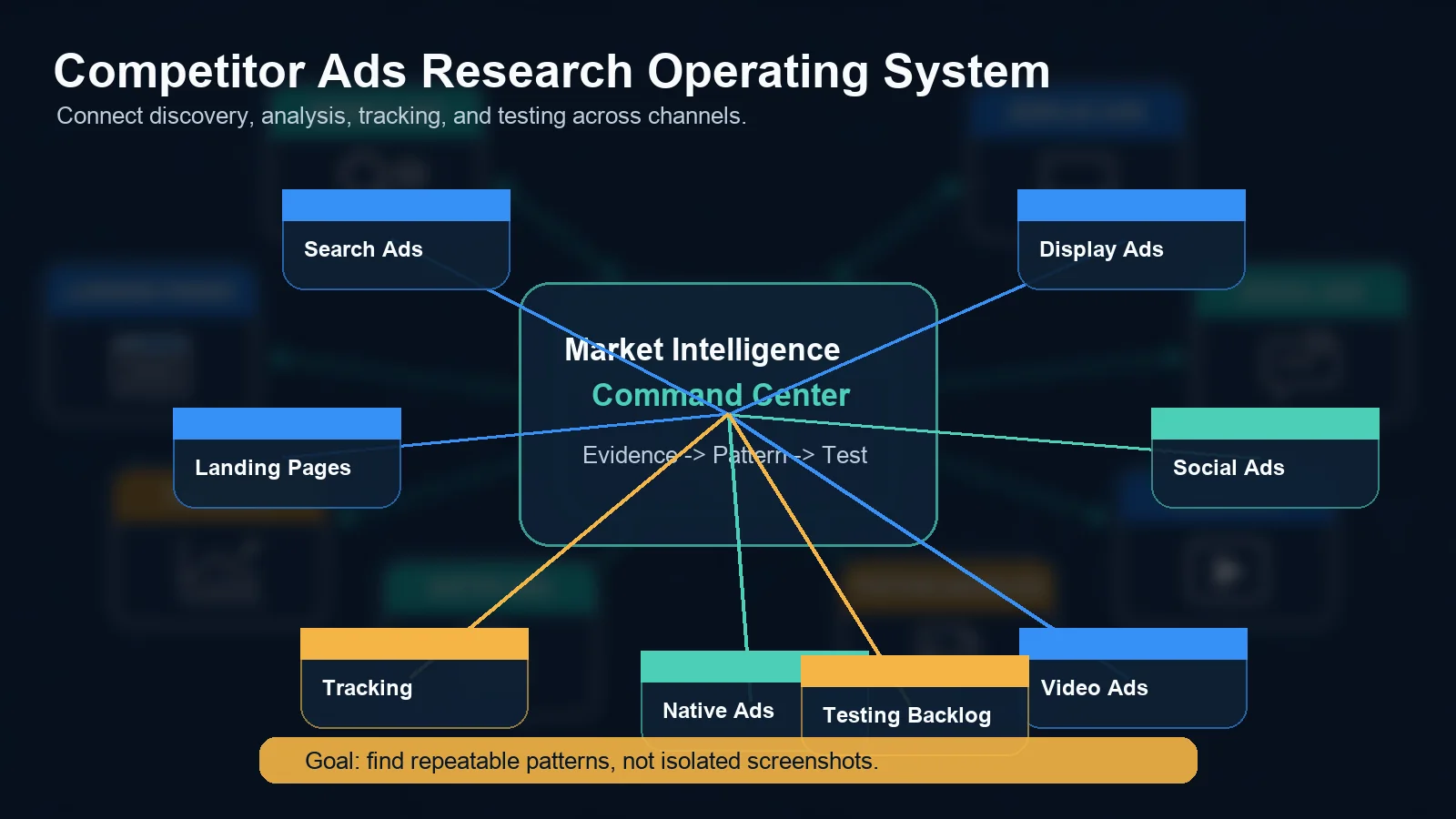 Competitor ads research works best as an operating system: discovery, analysis, tracking, and testing.