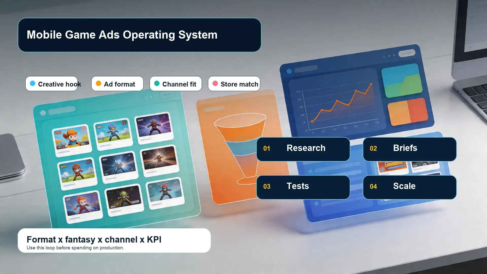 A practical mobile game ads system connects creative research, channel fit, testing, and post-install quality.