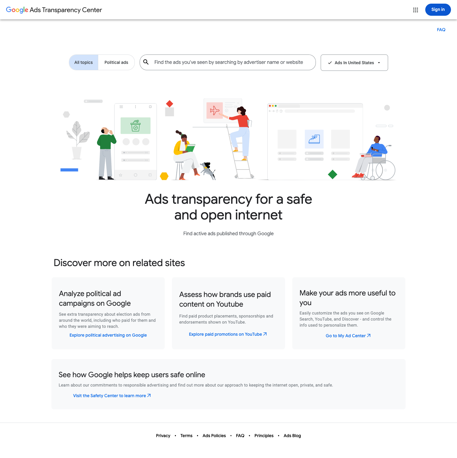- URL:https://adstransparency.google.com/ (Google 官方,免登录)