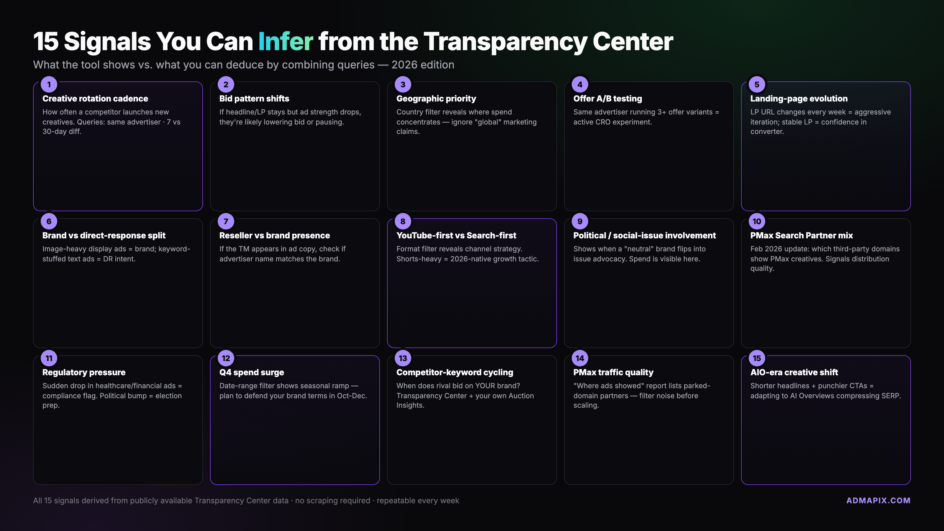 8. 15 个你能从透明度中心推断出的投放信号(核心差异化)
