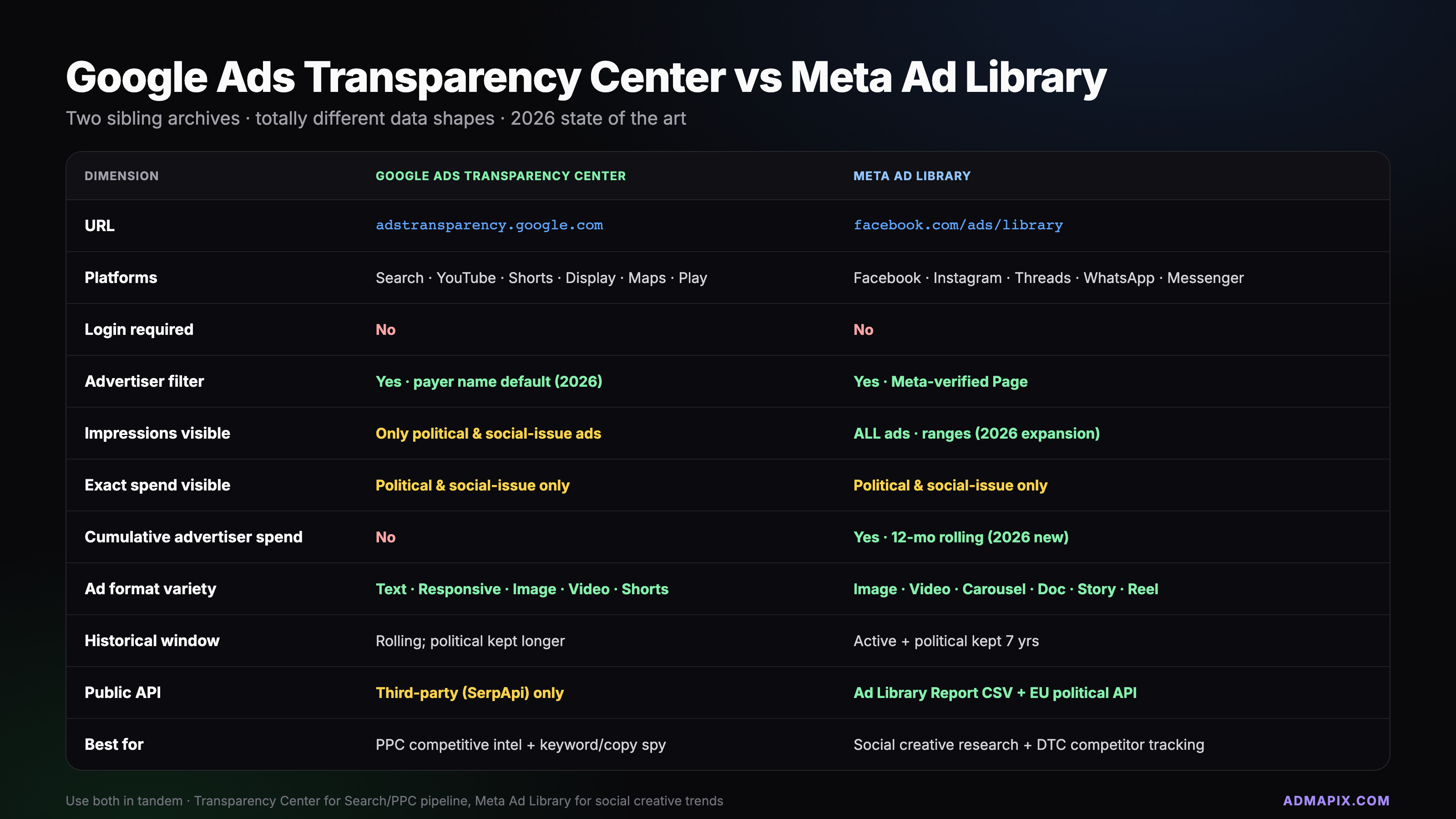 | URL | adstransparency.google.com | facebook.com/ads/library |