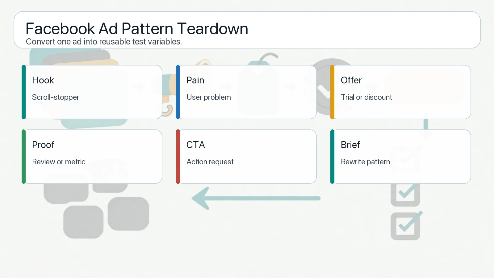 所以 “how to find winning ads” 不应该只是截图练习。真正的工作是把观察到的 pattern 变成原创测试。