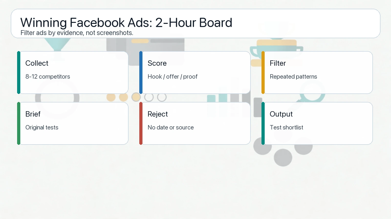 好的 winning ads workflow 会先用 filters 降低噪声,再用 creative signals 评分,而不是直接复制广告。